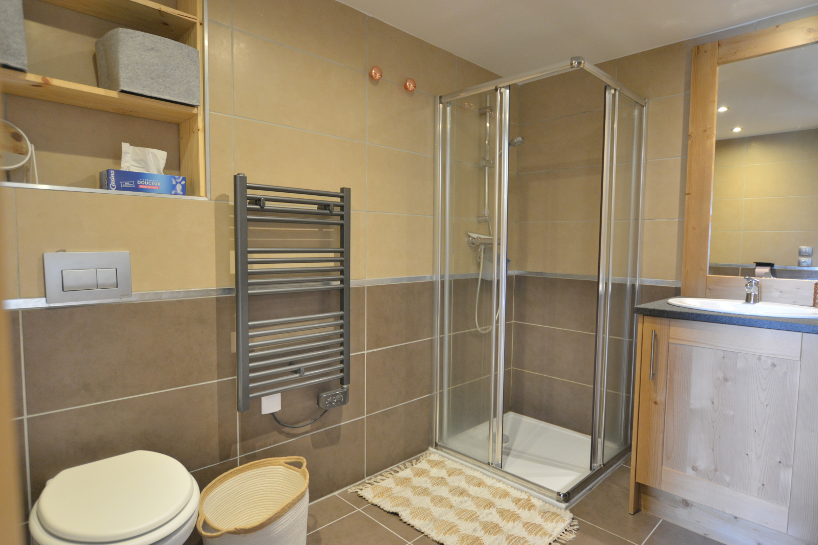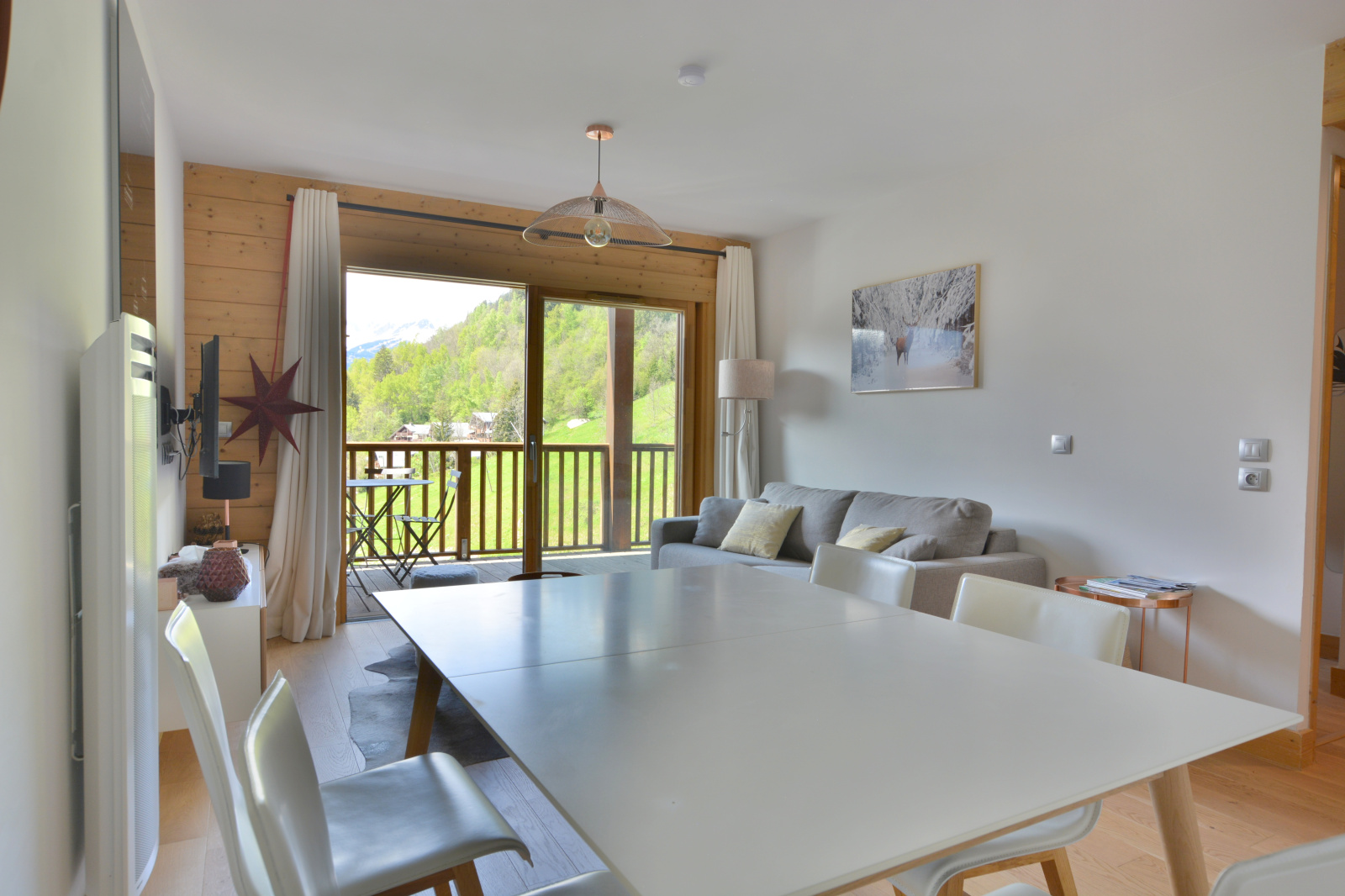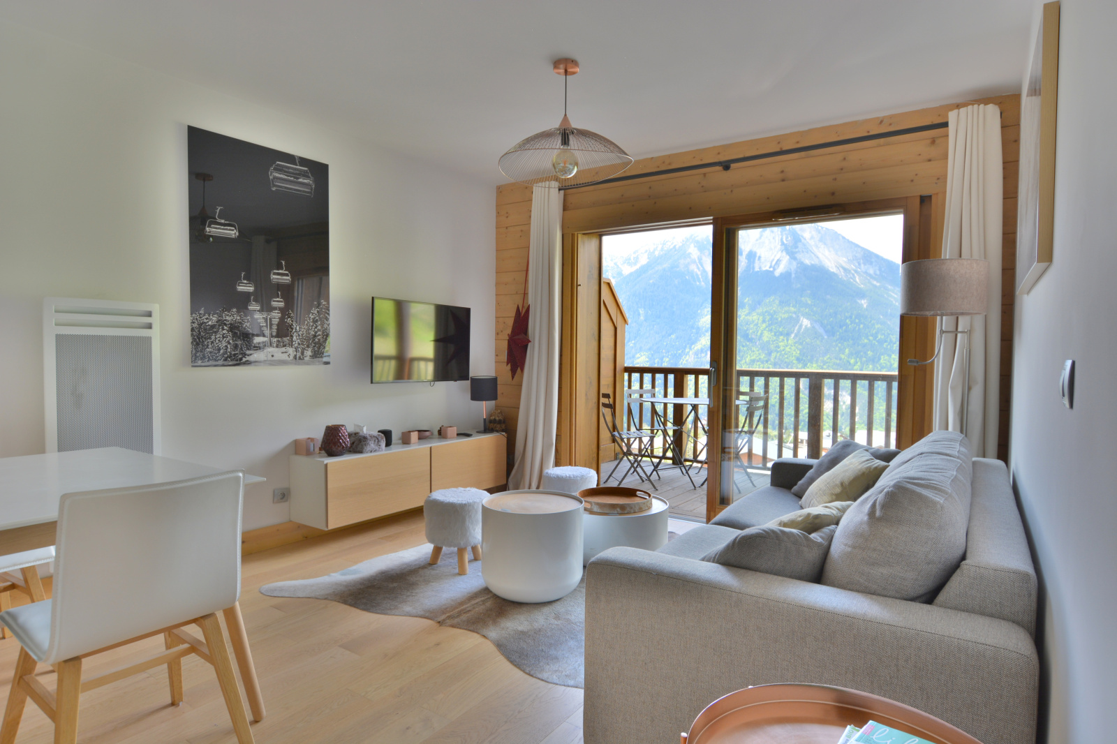Champagny-en-Vanoise. Résidence recherchée construite en 2016, située au pied des pistes (domaine PARADISKI) et à proximité du centre et de tous commerces. Bel appartement de 3 pièces offrant une magnifique vue dégagée et une exposition plein sud. Environ 54 m² habitables pour ce bien composé d'une entrée avec rangement, d'une pièce à vivre lumineuse avec cuisine équipée ouverte sur le séjour, de 2 chambres doubles (dont une avec salle de douche et WC), d'une salle de bains et d'un WC séparé. Vous serez séduit par la grande terrasse d'environ 11 m² dominant le village et offrant l'une des plus belles vues de la station. Capacité de 5 à 7 couchages. Un casier à skis au sein d'un grand skiroom et une cave complètent ce bien rare à la vente. Copropriété de 46 lots principaux, pas de procédure en cours.