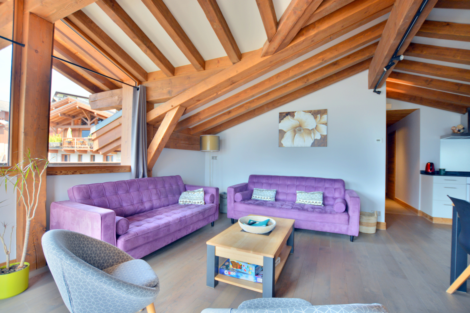 Exclusivité RMP Immobilier. Situé à moins de 10 minutes de Bozel et des ski-bus permettant l’accès aux 3 Vallées et à Courchevel, ce magnifique appartement sous les toits de la résidence La Cerise offre une surface de 82,68 m² (73,39 m² loi Carrez) et de très belles prestations. Le salon, lumineux et convivial, avec charpente apparente, s’ouvre sur une grande terrasse de 19 m² offrant une vue imprenable sur les montagnes environnantes.