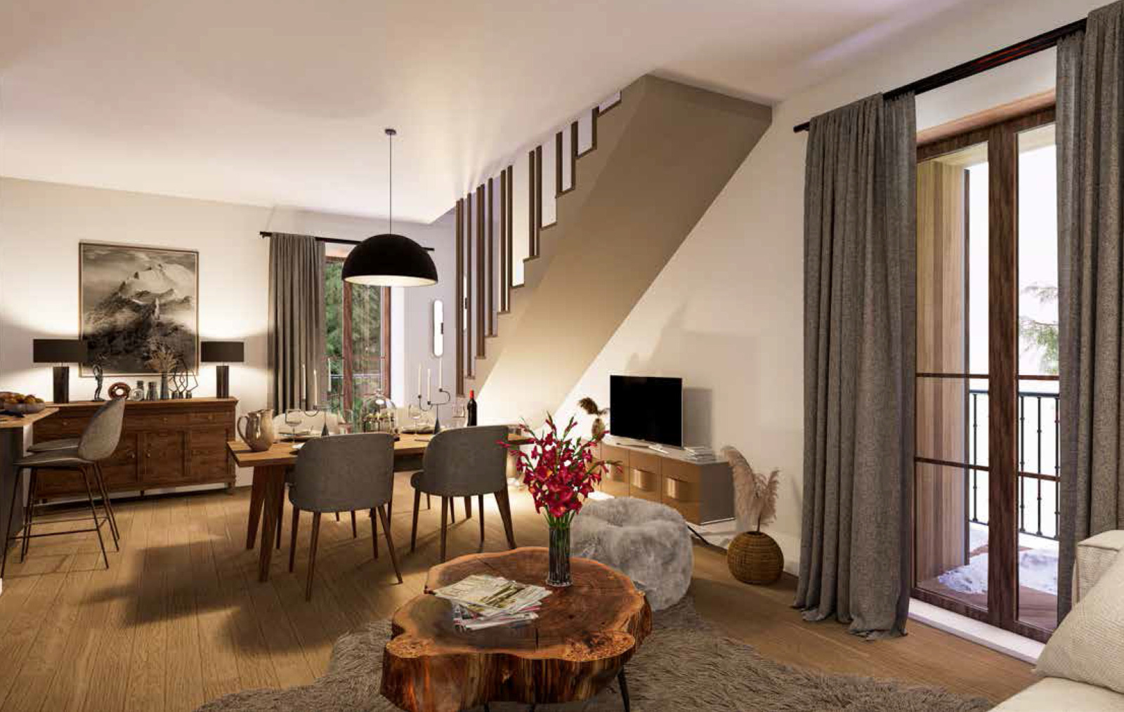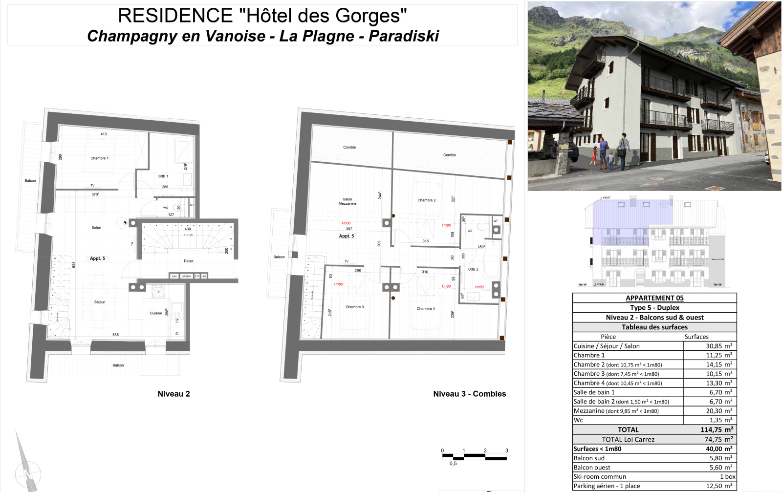 Produit rare, cadre idyllique. A l'entrée du Parc National de la Vanoise et à environ 10 minutes en navette des pistes de skis (domaine Champagny / Paradiski), venez découvrir ce magnifique appartement T5 DUPLEX, 8 à 10 couchages, d'environ 114 m² au sol. Ce bien se trouve au sein d'une résidence entièrement rénovée à neuf, offrant des prestations impeccables avec matériaux de qualité. L'appartement n°5, se trouve au dernier étage et vous propose de beaux volumes et une orientation SUD-OUEST. Composé d'une cuisine équipée ouverte sur le salon/séjour et son poêle à granule ainsi qu'un accès à 2 balcons. Côté nuit : 4 chambres, 2 salles de bains et un espace mezzanine/salon permettant des couchages supplémentaires. Vendu avec un parking extérieur et un casier à ski. Petite copropriété de 6 lots sans charges. Visite possible, travaux terminés. Offre spéciale jusqu'au 31/01/26 : Mobilier offert pour 1€. Bien rare à la vente.